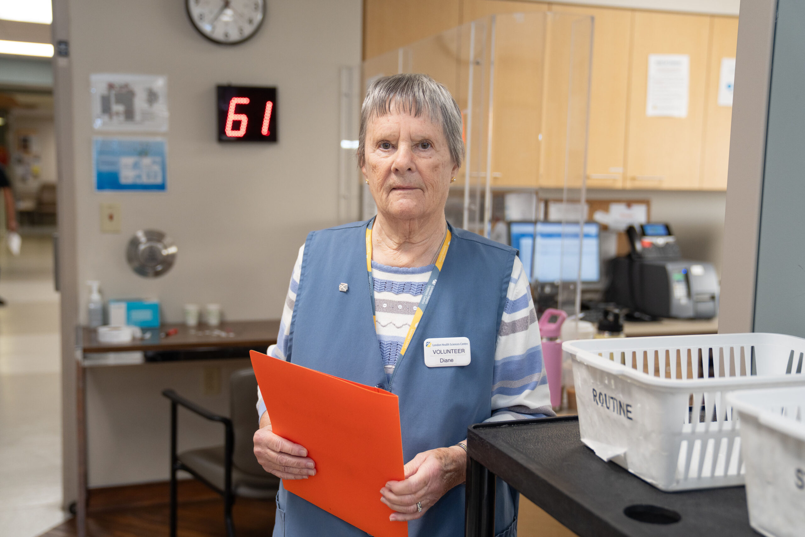 Diane has volunteered in a number of different areas over the years, with most of her time spent in the University Hospital Lab Test Centre. Over that time, she has witnessed remarkable changes in medicine, technology, and in the roles of volunteers.