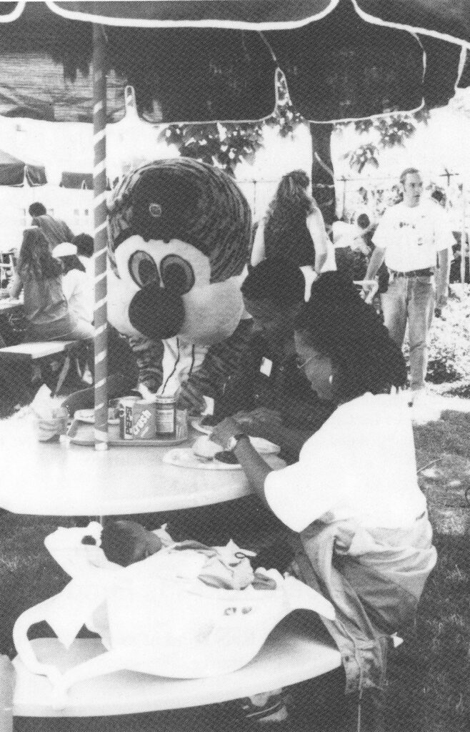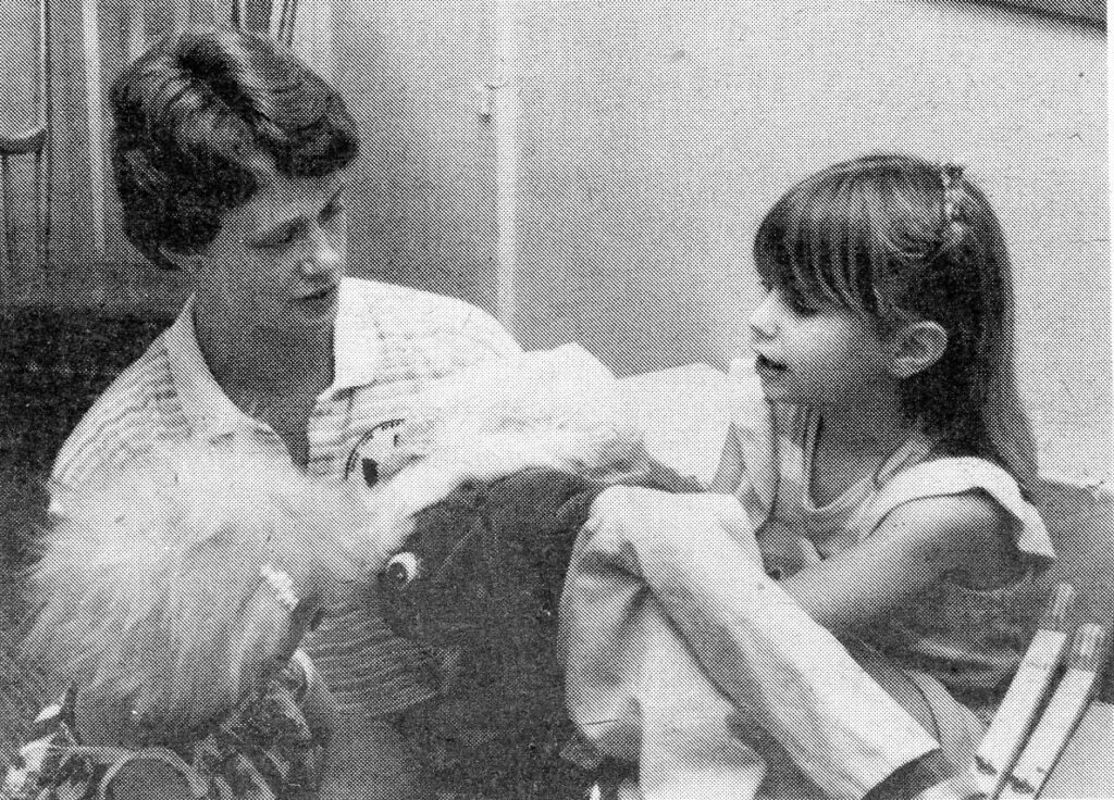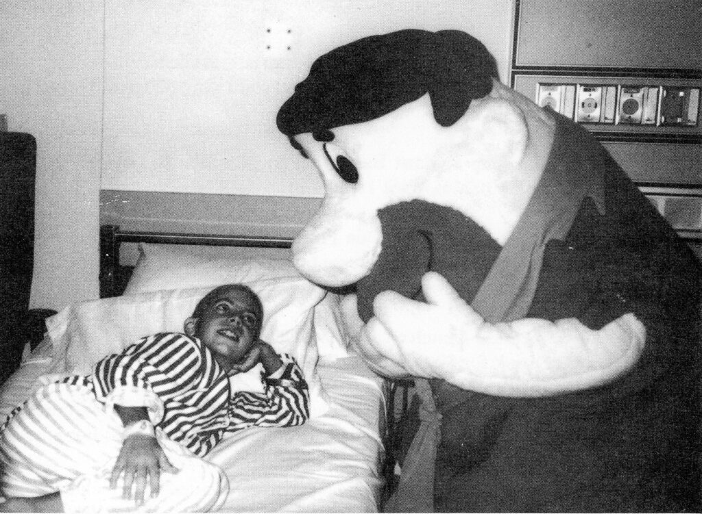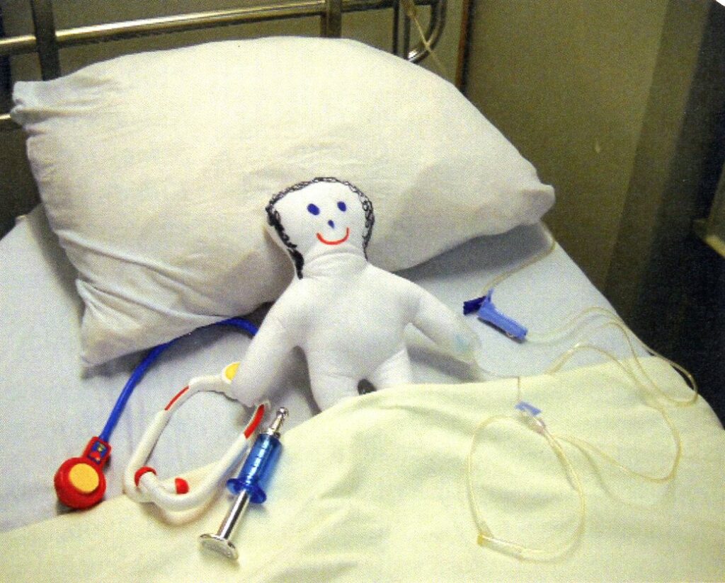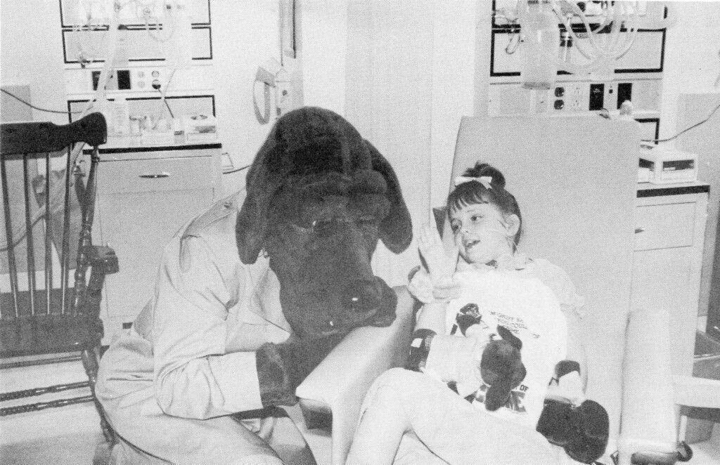 Above: Child Life Specialist Bev McDonald shows Wrinkles’ sore paw to a patient