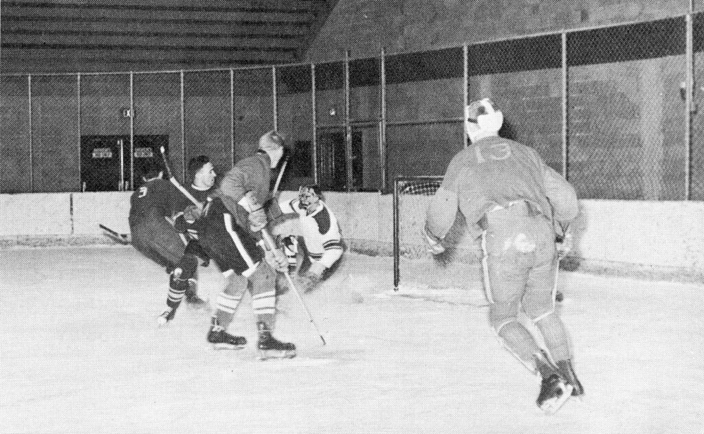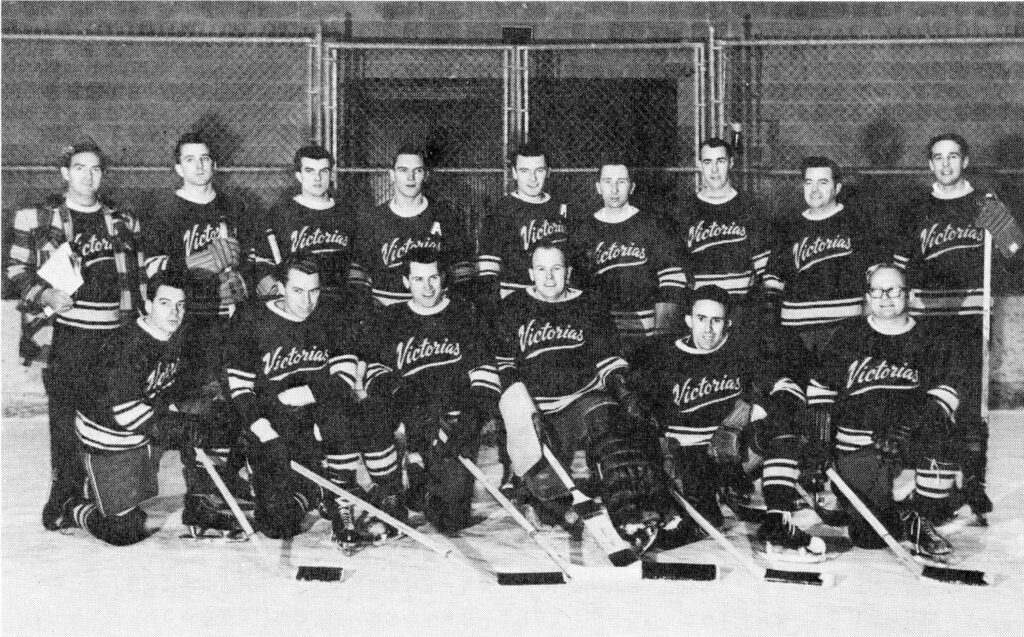 In the 1960s Victoria Hospital had a hockey team of its own called the Victorias who played games in the P.U.C. recreation ‘B’ League. The photo is of the team during their second season in 1965 prior to a game against “Defenders” at Oakridge Arena.