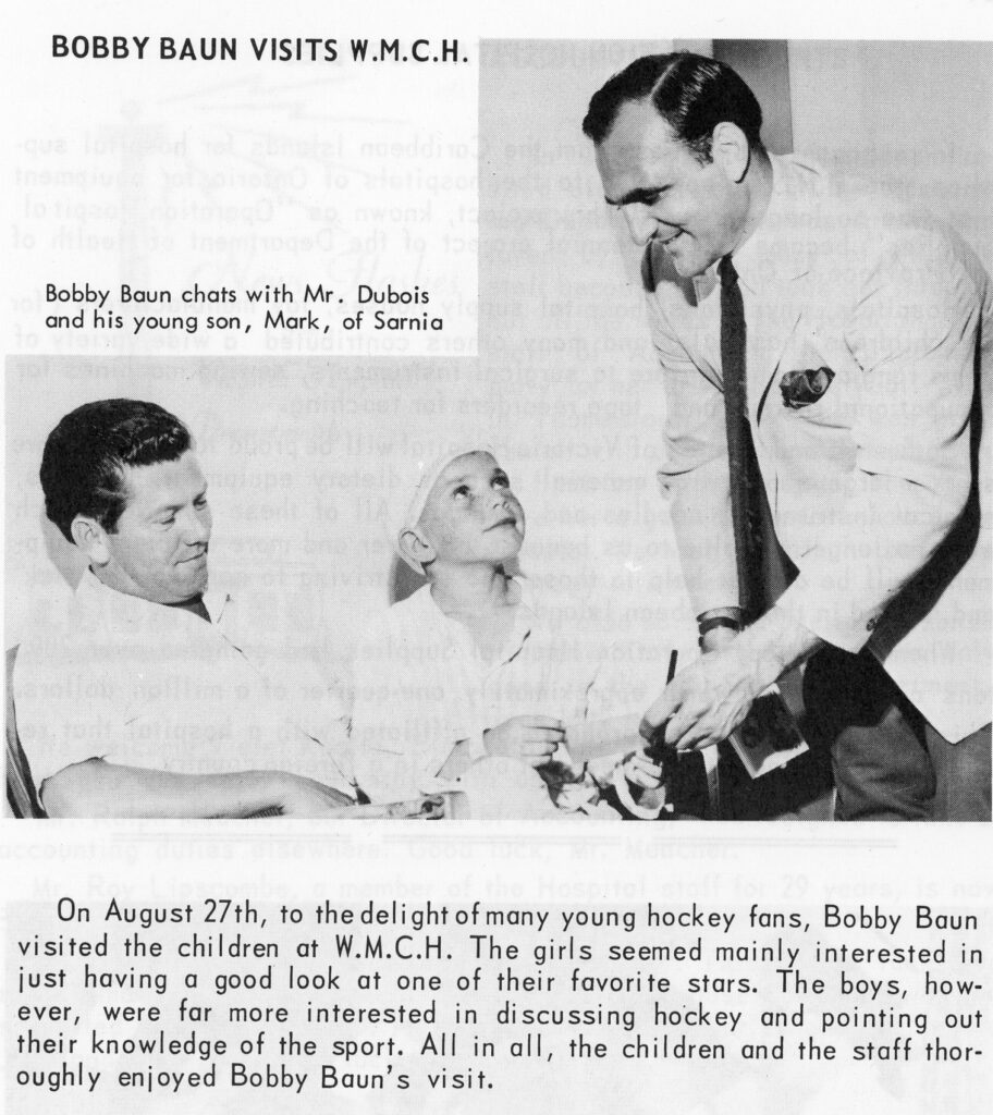 Bobby Baun from the Stanley Cup-winning Toronto Maple Leafs visited patients and staff at War Memorial Children’s Hospital on August 27, 1967. The last time the Leafs won the cup!