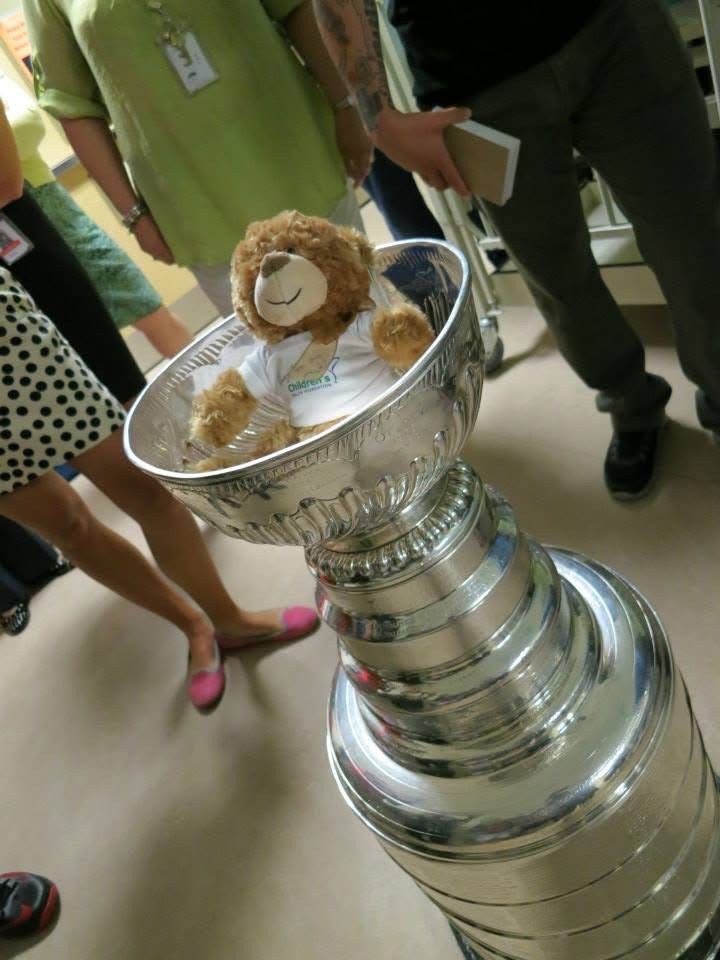 In 2013, Dave Bolland from the Chicago Blackhawks, a former London Knight and former Toronto Maple Leaf, visited Children’s Hospital with the Stanley Cup, bringing smiles to patients and families!